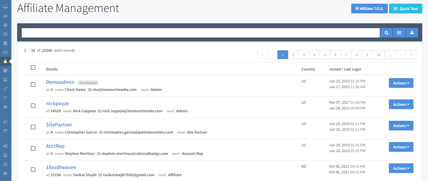 The Affiliate Management area provides a list of all your affiliates as well as features to help you manage them.