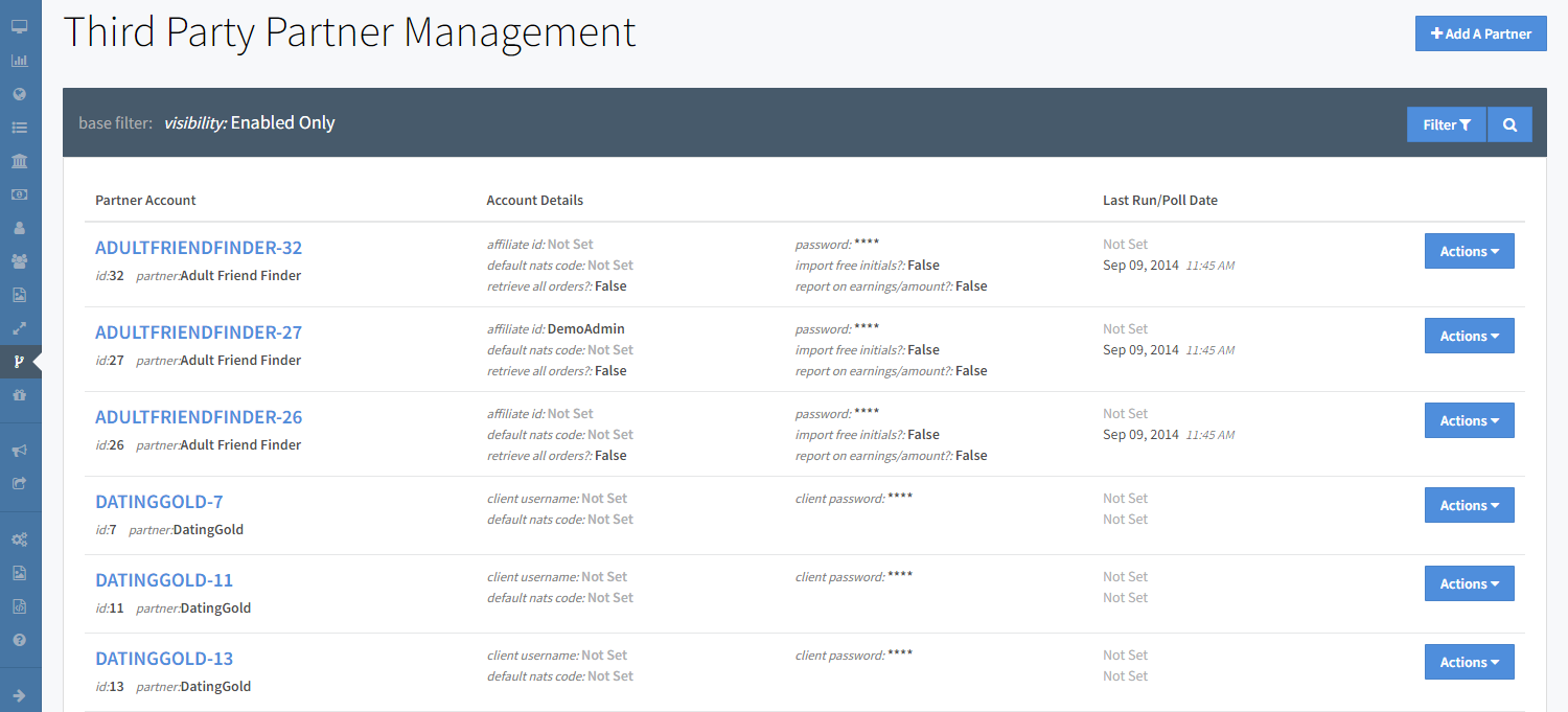 In the NATS Third Party Partner Management, you can set up third-party partners, delete your partners, and access a Third Party Partner Overview.