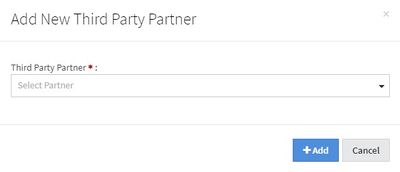 To add a new third party partner, go to the Third Party Admin and click the "Add A Partner" button in the top-right corner of the page. A widget will appear that will allow you to select a third party partner from a drop-down list.