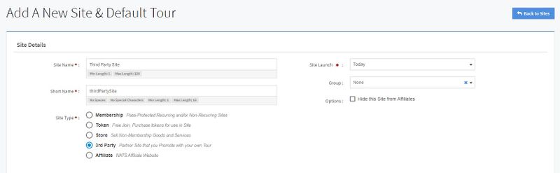 On the "Adding a Site" page, under Site Type, click "3rd Party".